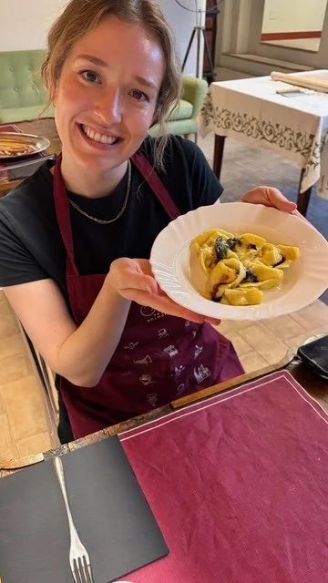 MASTER THE ART OF PASTA MAKING: Step into the kitchen with me and discover the time-honored tradition of pasta-making, “fatto a mano,” a skill lovingly passed down by the remarkable nonne of Bologna. With just a rolling pin and your hands—no machines—you’ll learn the techniques that have shaped pasta through generations. Together, we’ll craft pasta inspired by my culinary journey, refined in renowned establishments like Amerigo 1934 (Michelin Star), Hosteria Giusti, La Zaira Valsamoggia, and Salumeria Bruno e Franco. Finally, indulge in a dish made from your own creations, brought to life with the freshest seasonal ingredients and a touch of inspiration from these iconic places..
